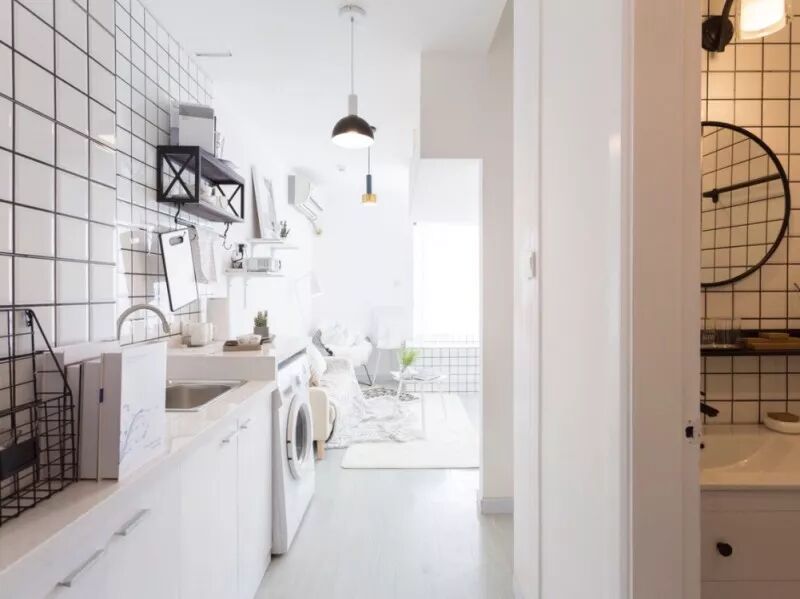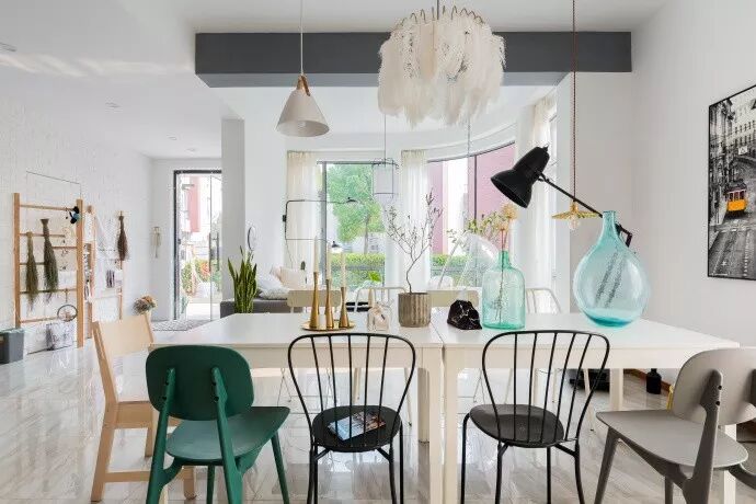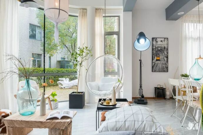 ins北欧风,窗边有一个超大白色海洋球池,房间是Loft,楼下的客厅配有巨幕投影,不光能聚会看球,还能拍拍拍,适合女球迷~
