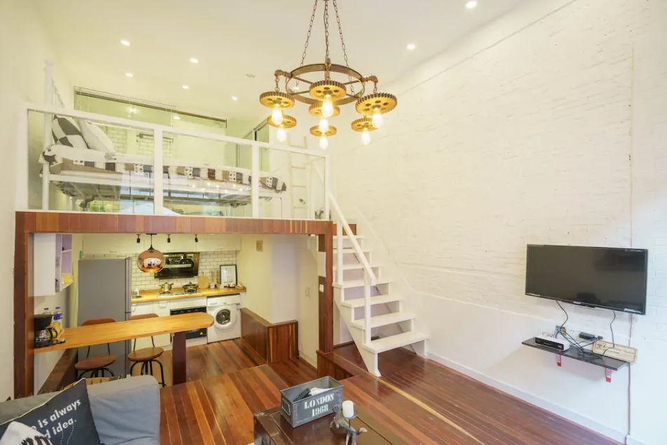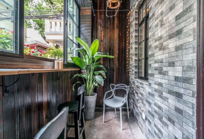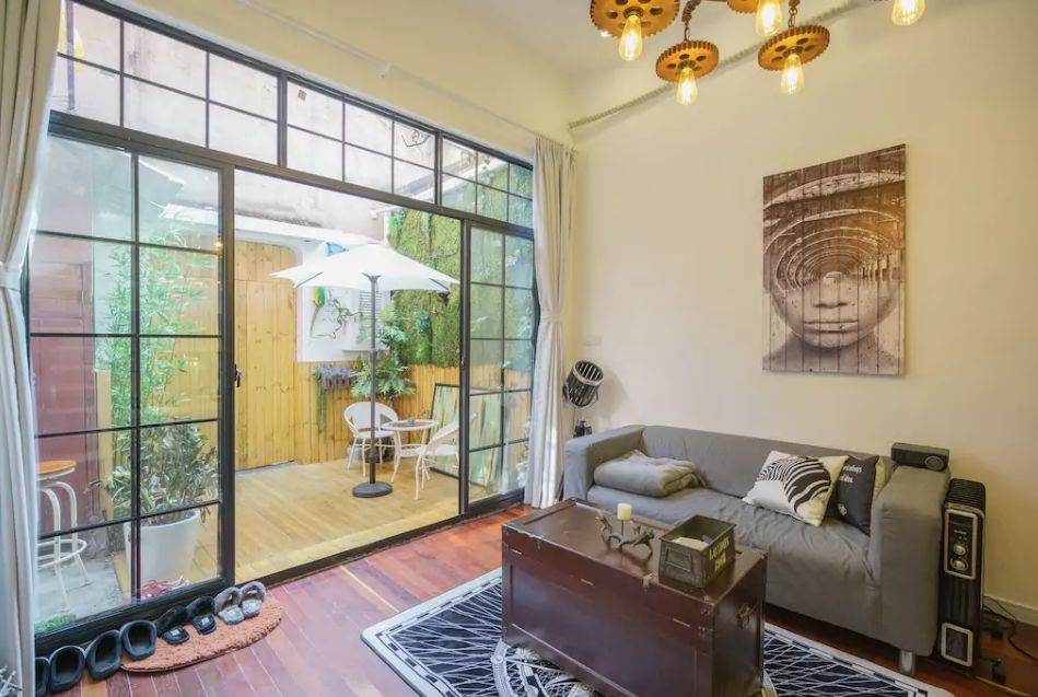 紧挨田子坊但是房子很安静,一进门就是一个天井小花园,屋内设施一应俱全,房间都配备了巨幕投影可以看球,还有不同主题可以选择。