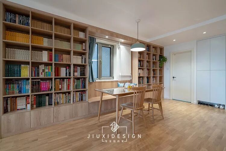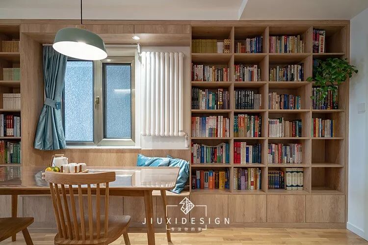 ▽下面这个设计是一个卡座餐桌,但是非就餐时段可以作为书房使用。