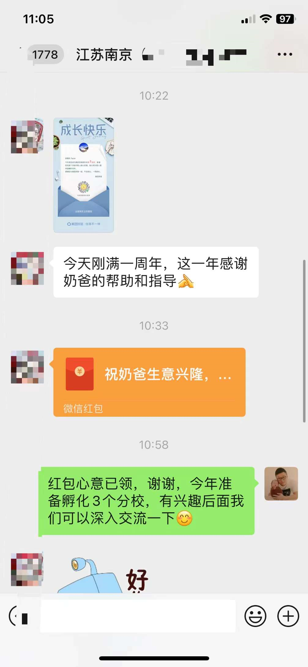 非常开心能够结识一大帮来自五湖四海的学员,大部分的学员都是从粉丝开始信任奶爸,然后成为奶爸实操课的学员,但每一位学员现在都成为了好朋友,我们的实操群每天都在分享城市民宿里面的干货,看着一位又一位的学员拿到好的结果,真的特别开心,比自己做好还要开心十倍百倍。
