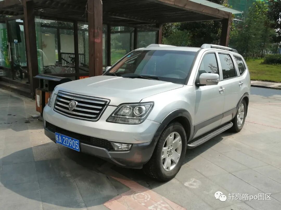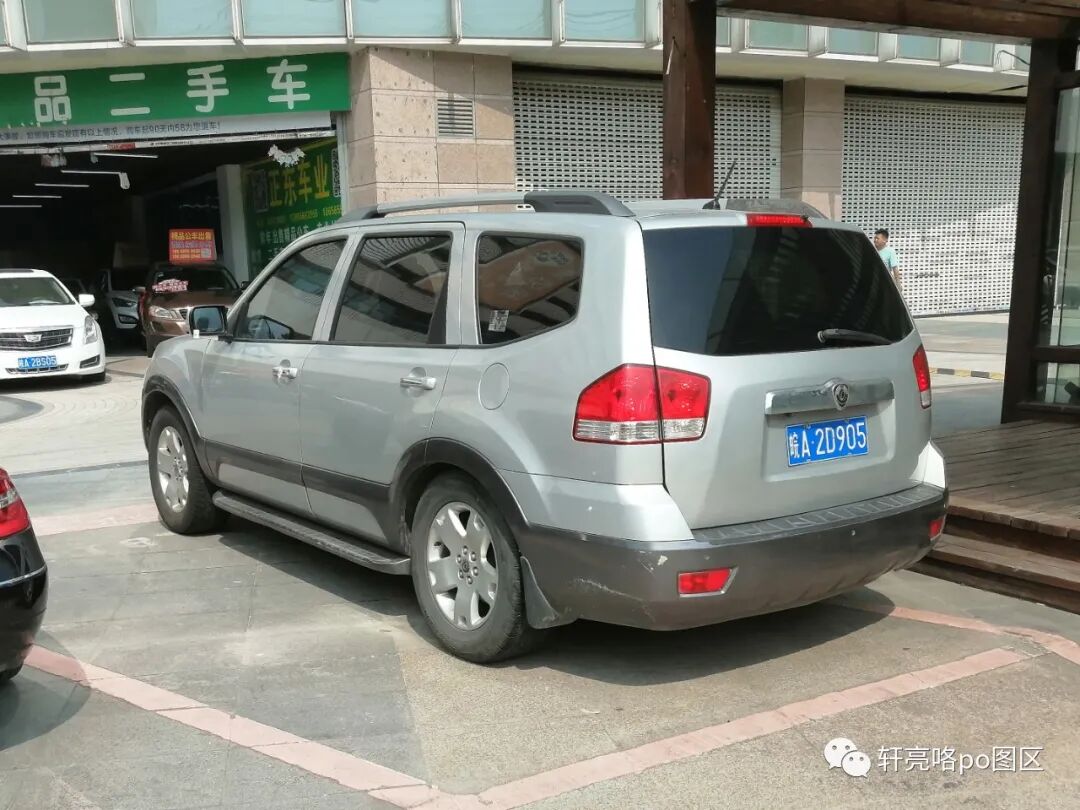 *悬挂合肥号牌的起亚霸锐Borrego初代型,车头视角。这款车外观设计蛮带感,有种类似于三菱与林肯杂交混血出来的感觉,看起来像是亚洲车,但又完全不是,带着点美式的憨劲。后来中期改款比较大的改动就在于中网,换上了大师设计的“虎啸式”前脸,可惜并无引进国内。