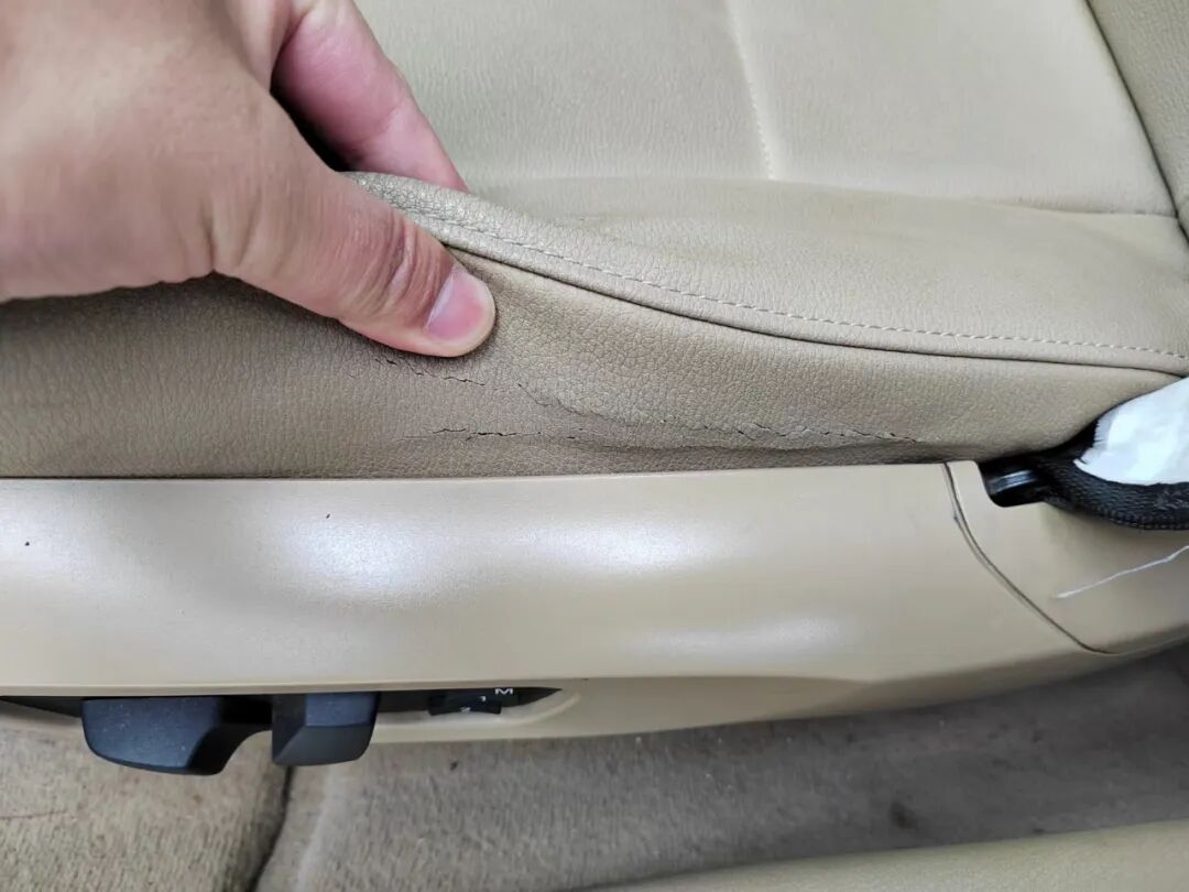 其实刚才检查车身骨架的时候就已经看到了内饰的整体情况,看起来磨损还是比较严重的,特别是主驾驶座椅部位,都已经磨得明显发黑了,而且还有明显的破损,看来原车主使用的不太爱惜。