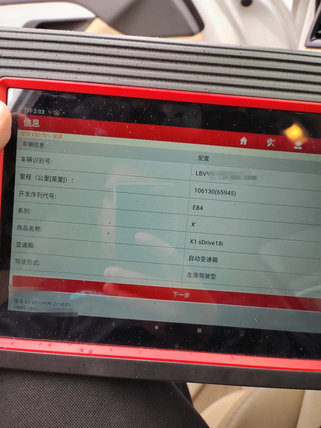 经过详细了解,这台宝马X1是2014款 sDrive18i 领先型,2014年4月上牌,有过一次过户记录,表显里程106130公里。