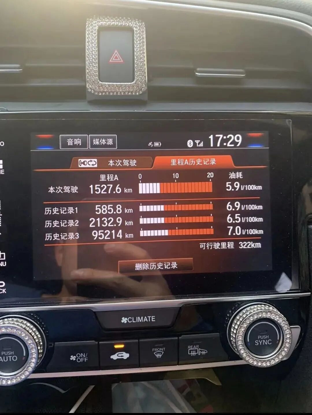 刚买回去岛弹就开着这台思域和同事一起出了个远差,路上无聊的时候,同事随意捣鼓一下车机系统,结果发现了一个记录里程的信息,看了上边的记录,这车的公里数都9万多了!