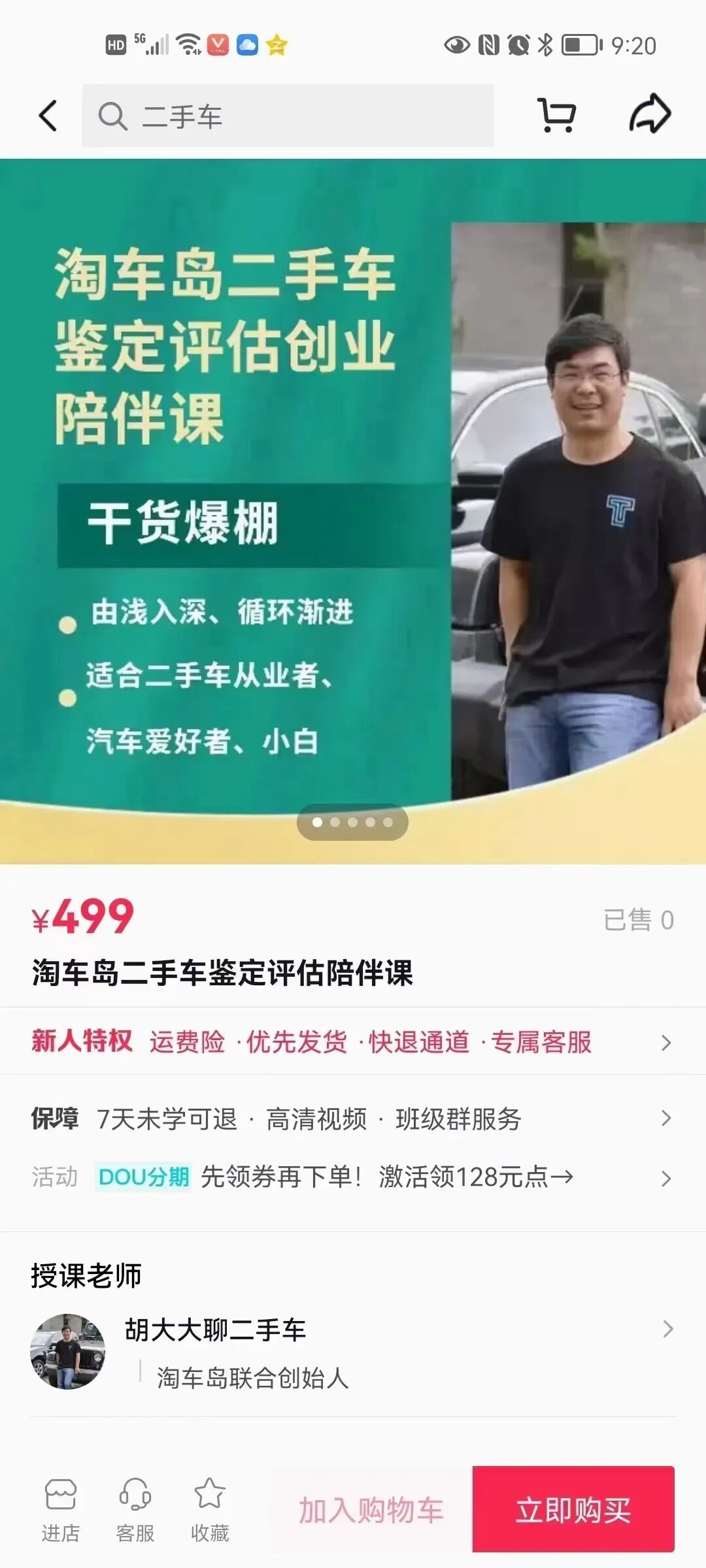 淘车岛二手车鉴定评估创业陪伴课链接,感兴趣的可以复制粘贴到抖音看看:https://haohuo.jinritemai.com/views/product/detail?id=3543700161857474178&origin_type=604