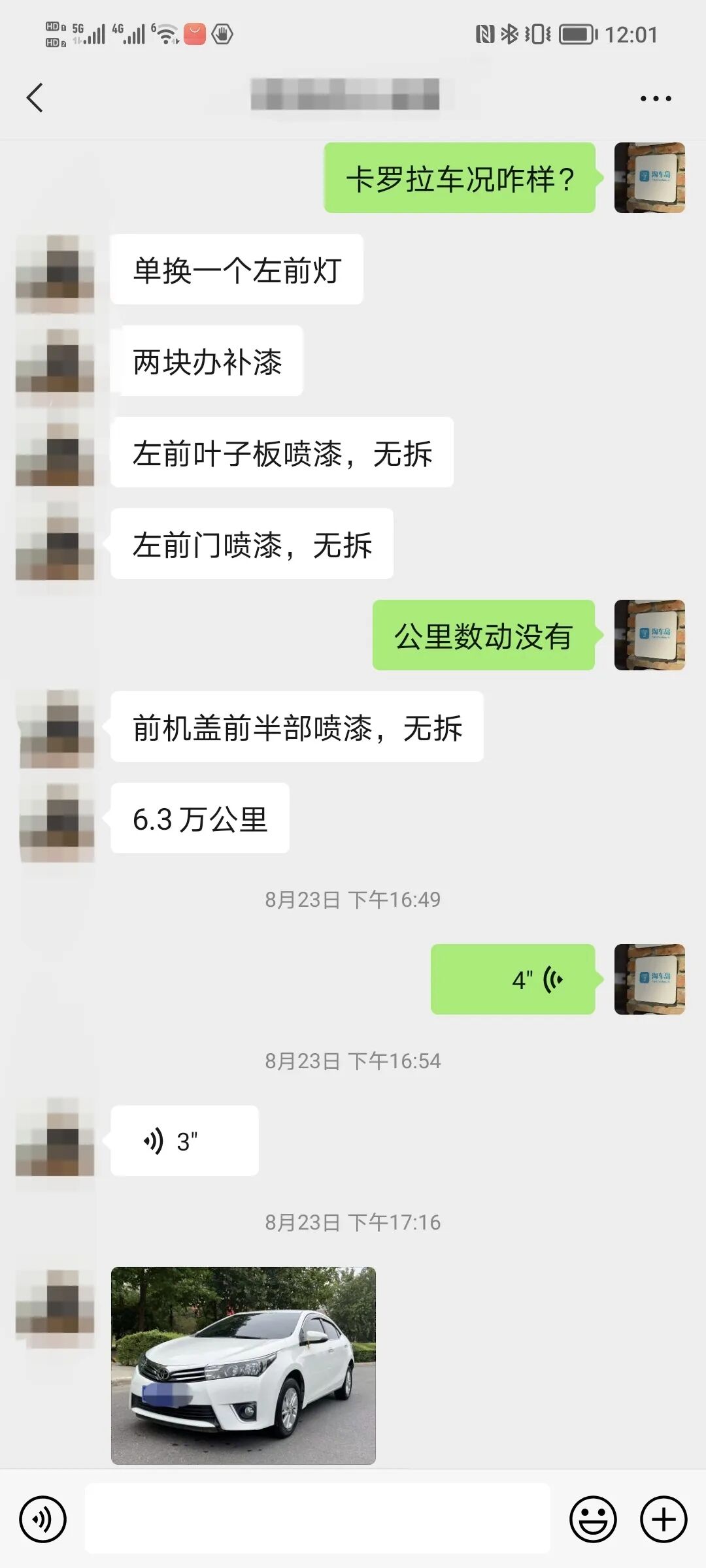 在根据帮岛弹的要求淘车的过程中,我们的淘车顾问淘到一台17年的价格不错的卡罗拉。17年7月上牌,1.6L自动挡,卖家告诉胡大大这车码表显示4.8万公里,实际6.3万公里(这是欲盖弥彰嘛),价格只要6.5万,后面出价6万也愿意卖。其实6.5万的价格已经很实惠了,只要车况没有大的事故、泡水火烧,手续正常就非常值得购买了。