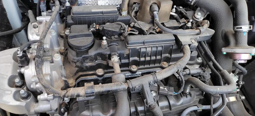 接下来检测发动机舱以及左前叶子板内侧。发动机舱内的发动机变速箱以及附属零部件检查都正常。