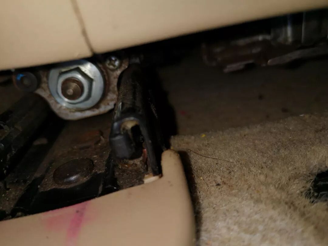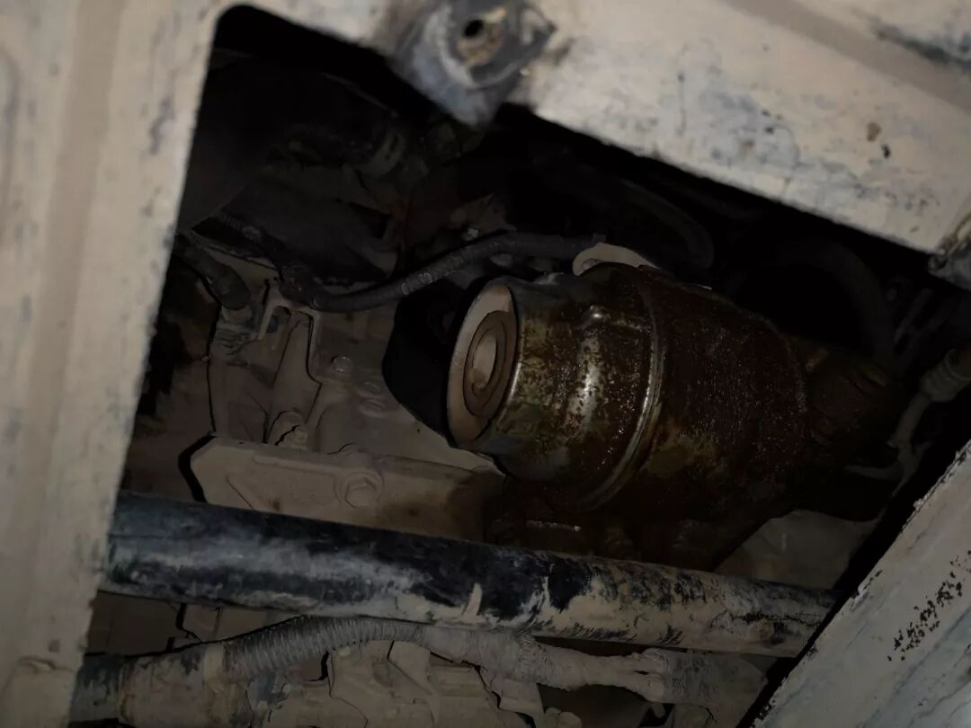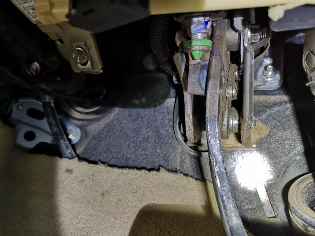 当我检测到驾驶舱主驾驶位的时候,发现车门框处、刹车和油门踏板处、转向柱处和座椅滑轨处都有锈迹,此车有泡水的嫌疑,但是单从这些表面的地方不能断定就是泡水车,因为这些地方本来就裸露在外面很容易遇到水或其他液体被腐蚀。