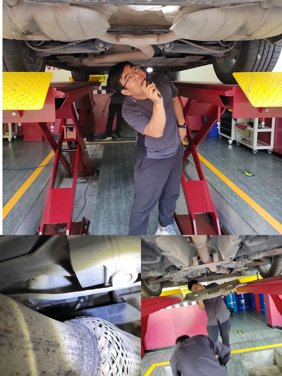 后面就是试乘试驾和底盘检查,没有条件创造条件也要检查底盘是淘车岛多年的工作要求和习惯。犹豫看车的地方比较偏也没有认识的修理厂熟人,就在试驾的时候就近找了一个修理厂,给人家说说豪华或花几十块钱用人家的架子升底盘。因为底盘可以看到很多东西,比如是否有严重的磕碰剐蹭、是否有底盘零部件老化破损、发动机变速箱下面是否有漏油渗油现象。如果有重大事故或泡水,底盘上也是有蛛丝马迹的。