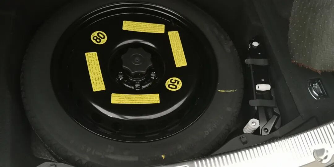 检查轮胎,四条轮胎以及备胎都是原车胎,日期匹配,品牌匹配,磨损和公里数匹配。