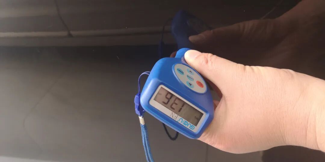 接下来我们检测车子的外观件,凭借多年的人工经验和漆面测厚仪综合检测,外观金属覆盖件左后门有喷漆,右后叶子板和右后门结合处有一块钣金补漆,只是外观件的修复,不伤及里侧和车身骨架。
