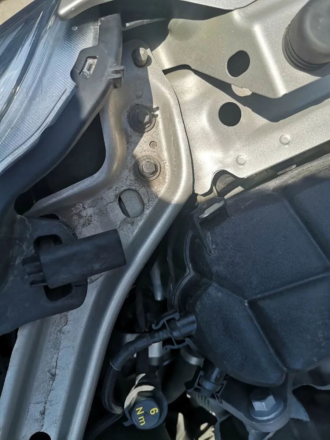 然后检测发动机舱及后部情况,经检测,前后部大梁及梁头、防撞钢梁均无修复更换迹象,左右叶子板内骨架、减震器底座又称减震包完好无损,发动机变速箱无拆卸维修痕迹并无渗漏情况,检测到这心里默默的想这台车还错啊,捡到便宜了啊。但也不能掉以轻心,二手车车况鉴定检测是一个全面系统化的工作,需要全面的排查无异常后才能客观的下结论。