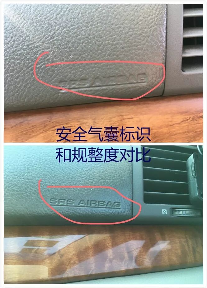 但是每一辆经过我们成交的车,我们的检测都会慎之又慎,最后交叉仔细复检过程中还是发现了疑问,中控台有轻微的起泡现象,根据这个细节继续仔细查看安全气囊和气囊标识,发现气囊标识字体不够清晰和规整,这个细节相信没有大量阅车的经历和心细负责的心态很难能扑捉得到吧。
