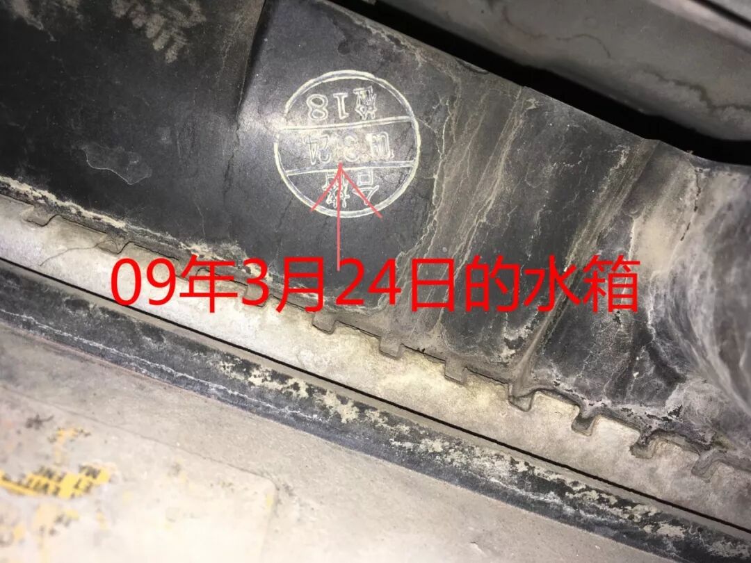此车维修保养记录不全,也没有相应的说明。为了确认我们判断正确,我们再一次检测发动机舱,前面水箱、水箱框架、大梁等都是原厂的,没有较大事故现象(就连从个人手里收这台车的商家都承认自己大意了,没看出来,这下要亏大了)。