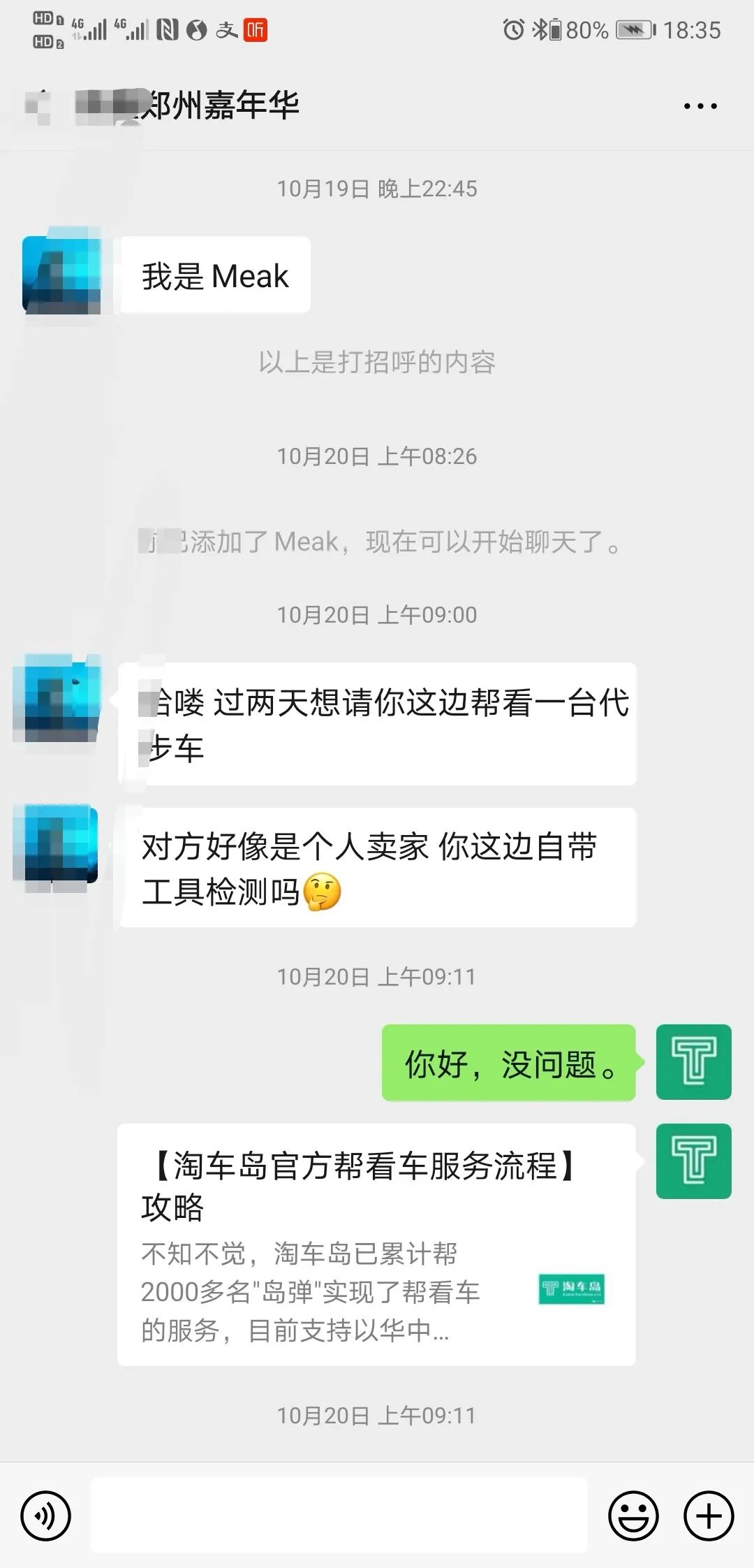 但毕竟第一次买车,而且还是台二手车,车况什么的还是心里没底。不过年轻人经常上网,像头条、B站等自媒体平台也是经常玩,通过自媒体,“岛弹”很早就关注到了我们,虽然没有合作过,但是经常看我们的淘车案例和检车案例,对我们非常信任。正好现在要买二手车,就委托我们对车况做一个全面检测。