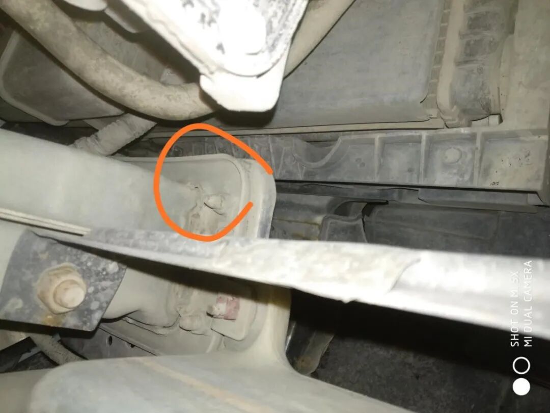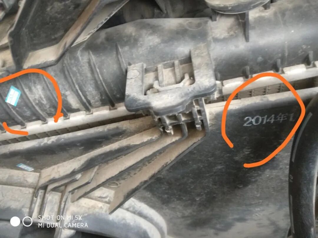 前部纵梁没有异常,只是左侧纵梁梁头与前防撞钢梁吸能盒结合连接处焊接部位因受力有漆面起皮现象,而右侧没有此现象。从前中网处看防撞梁固定螺丝有拆卸痕迹,紧接着发现水箱及散热风扇日期为2014年出厂,明显换过了,水箱框架前杠螺丝有拆卸痕迹。这台车就是所谓的换了“前嘴”一套。虽然没有伤到车身骨架,但是价格也会相对便宜些才可以!