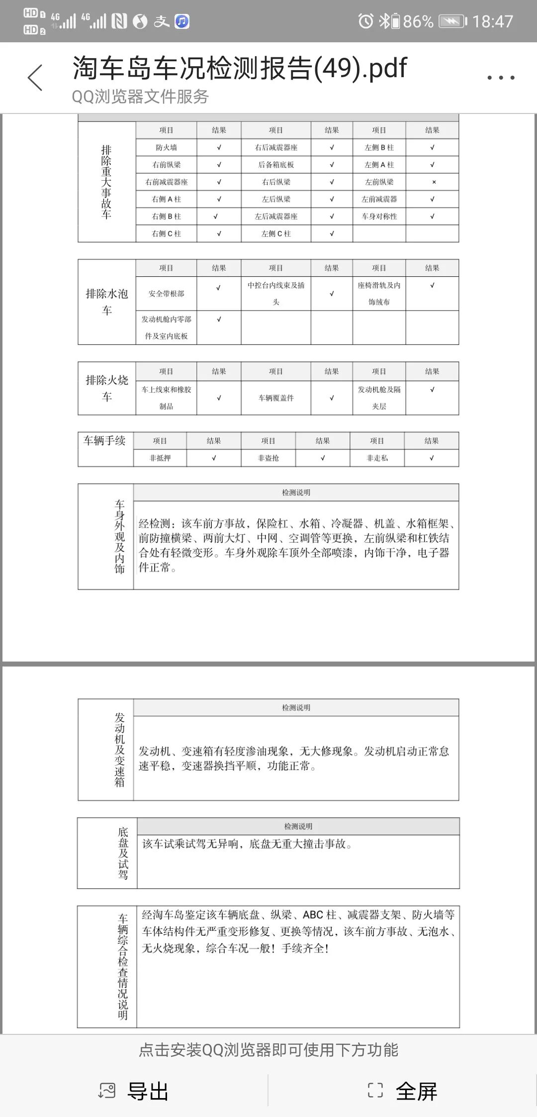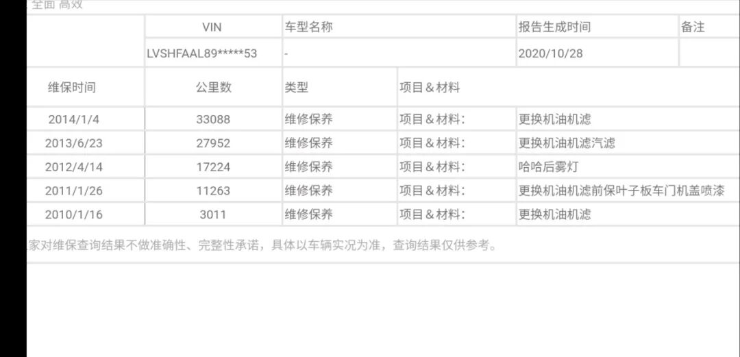 完成车辆静态与动态检测后,我们又查了下车的维保记录和出险记录,基本与检测结果相符。