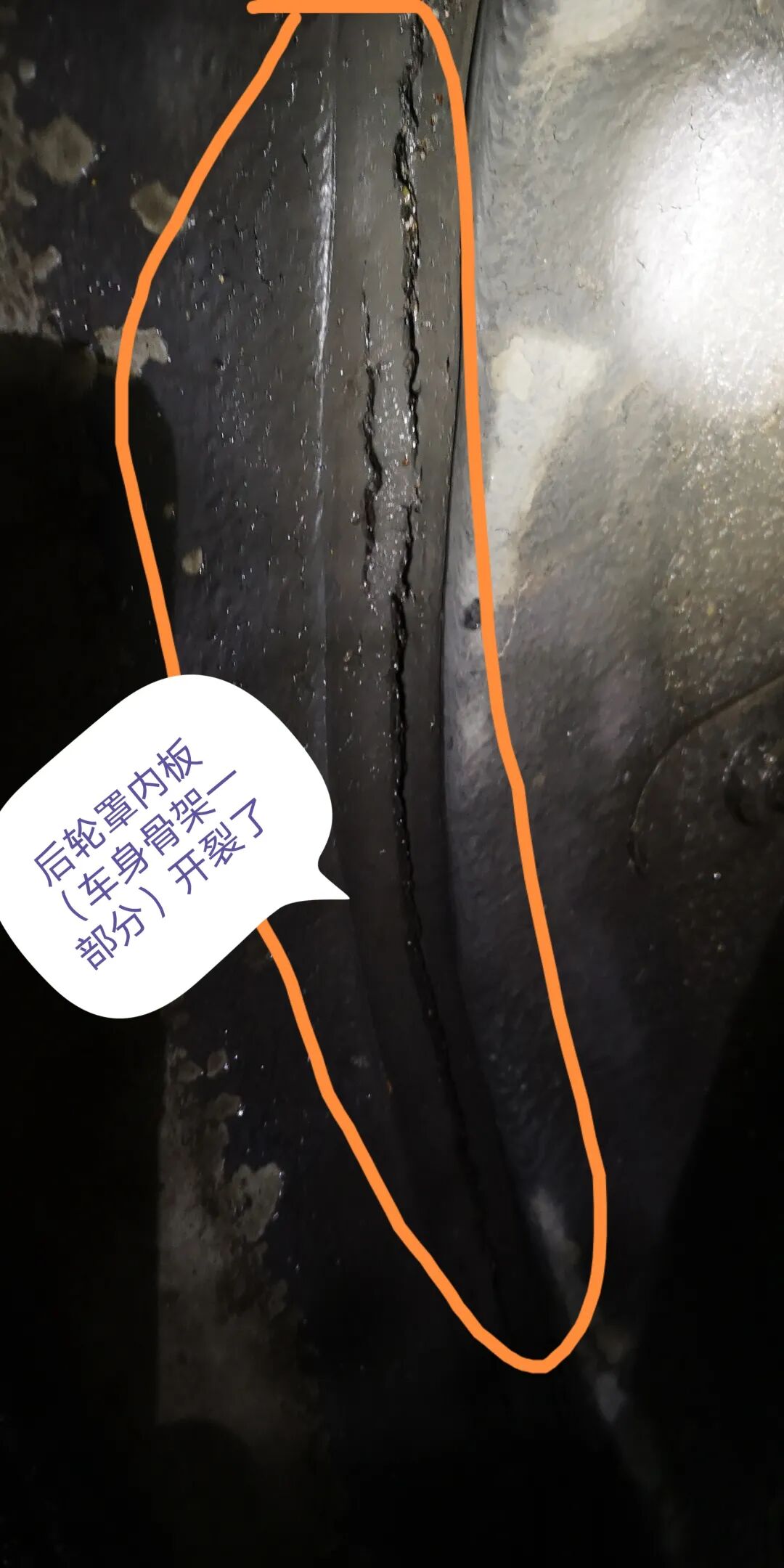 首先发现和后减震器一起的后轮罩铁板都裂了,说明这车使用强度非常的大。