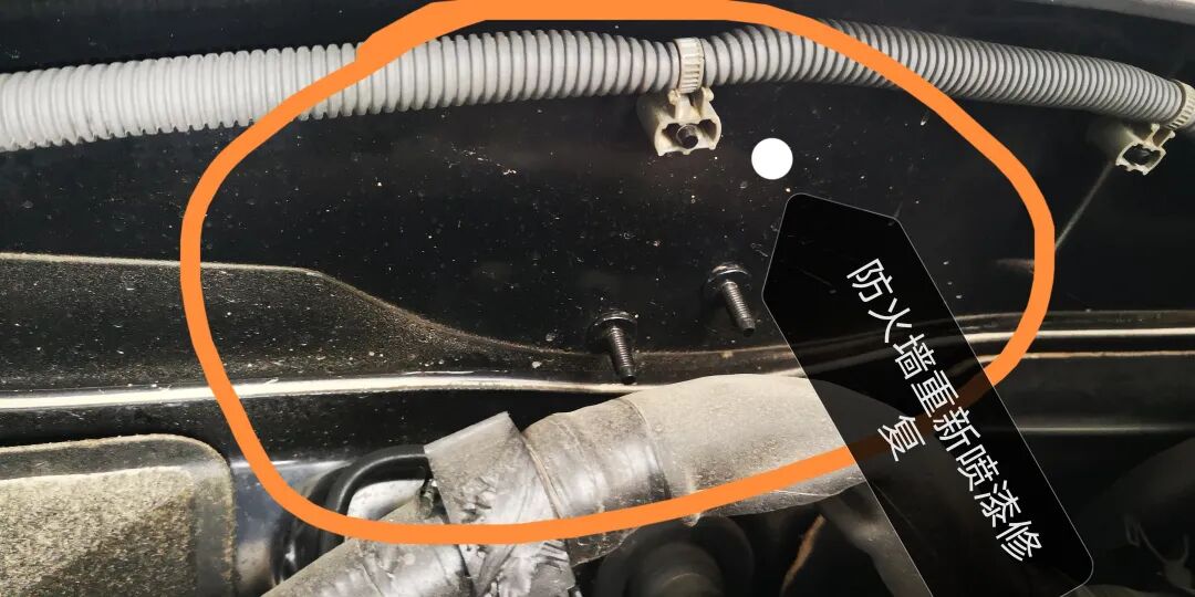 接着我仔细看了看其他部位,发现纵梁也没能幸免,后面排气管也拆修过,发动机上的管路很多都是重新打胶修复的,就连防火墙都喷漆了。