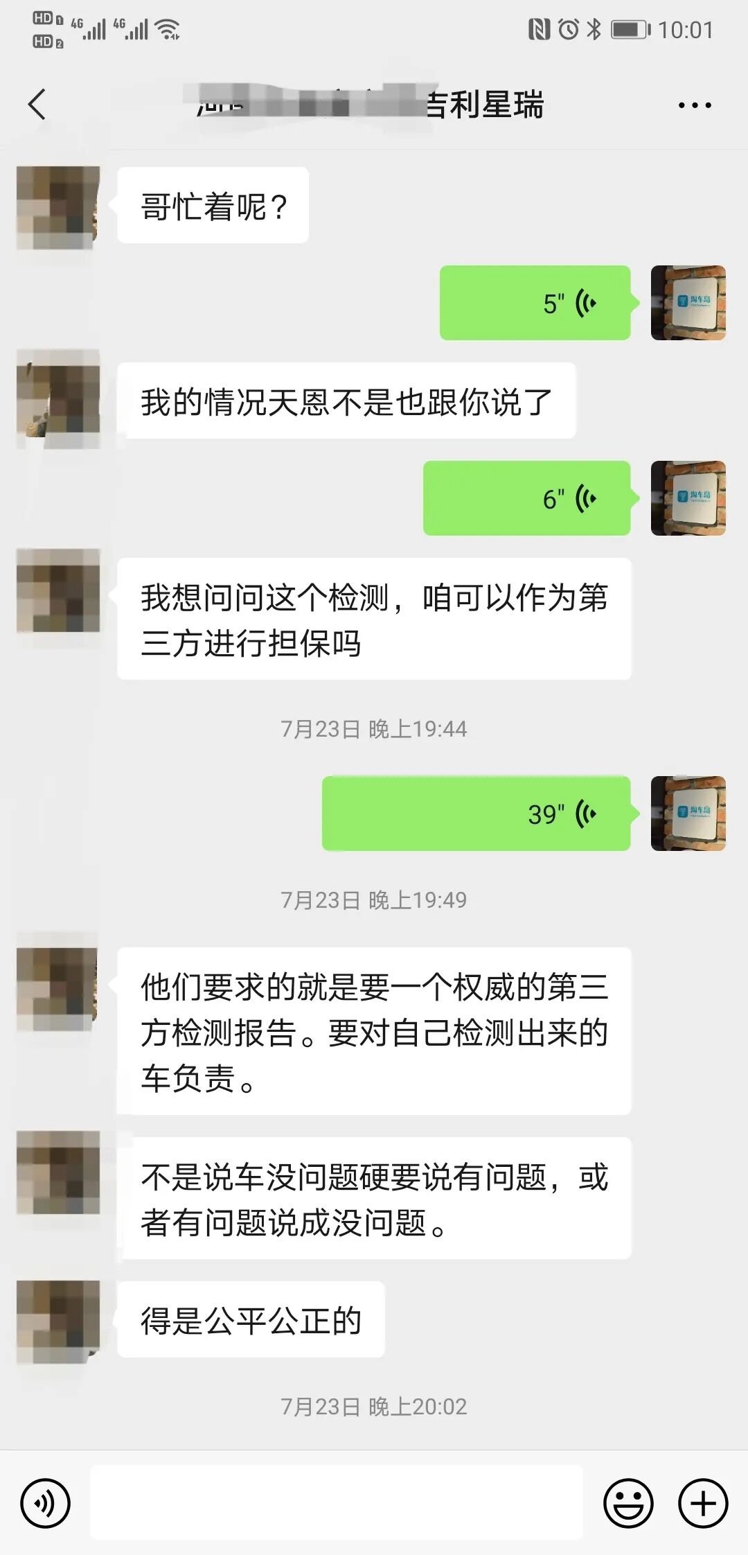前两天,有一位”岛弹“的朋友唐先生,自己在一家4s店花费14万多元提了一台新车吉利星瑞,但是最后发现自己却买到了剐蹭过的车,要求退换的时候遇到了麻烦。4s店刚开始称,可以找第三方检测,如果有任何问题假一赔三都可以,后来又拒绝退车。