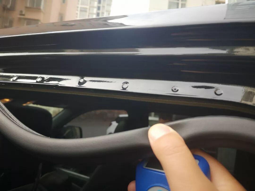 但是发现车子外观覆盖件全部补漆,还有两个车门窗玻璃更换过。综合以上情况,胡大大感觉情况不对,车子没有大的碰撞事故,公里数也不大,看着内饰车主开的也挺爱惜的,怎么会全车喷漆和更换玻璃呢?