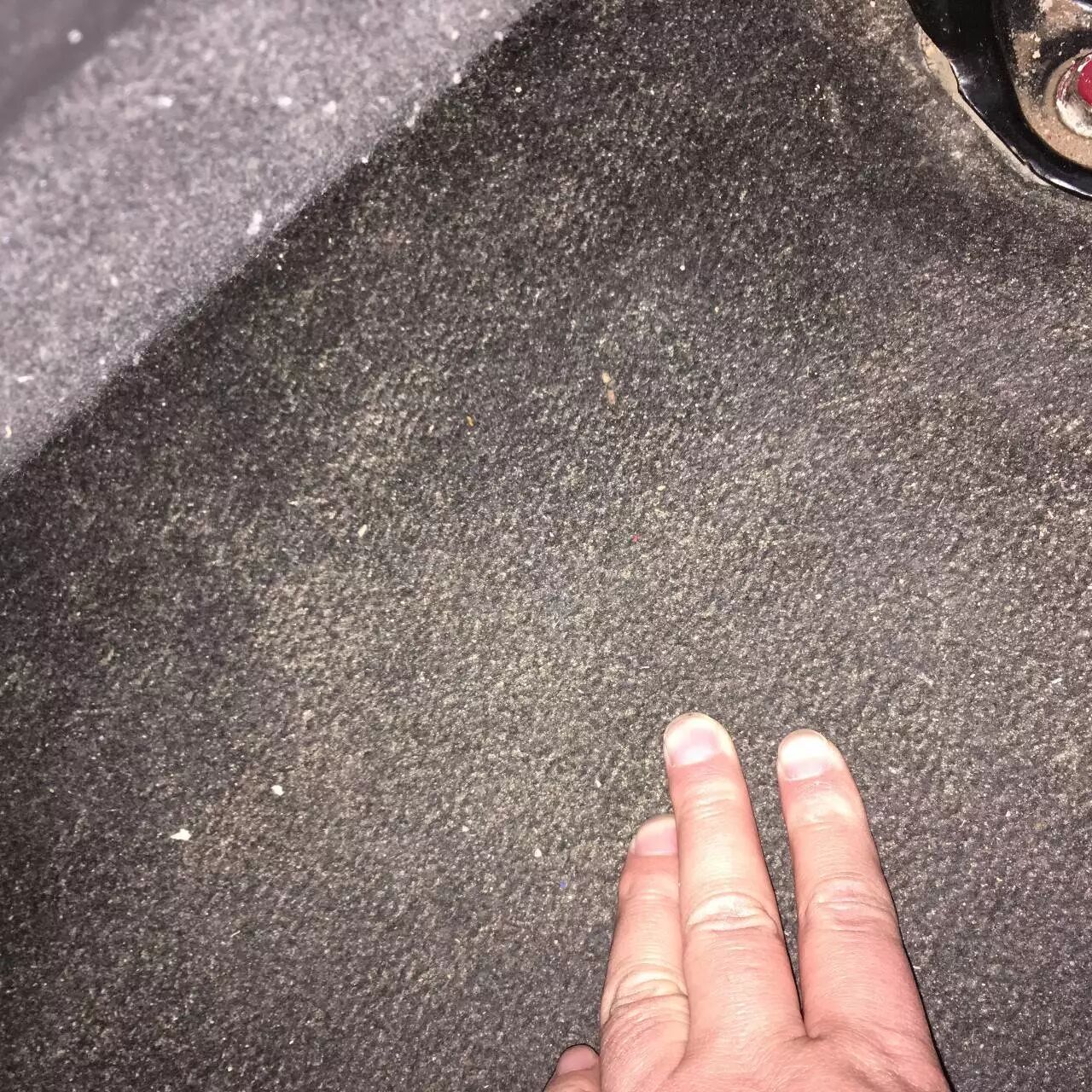 再用手触摸车内地毯,有一种被水洗过又干的感觉,摸起来涩涩干干的,不像正常的地毯具有一定的柔软性了。