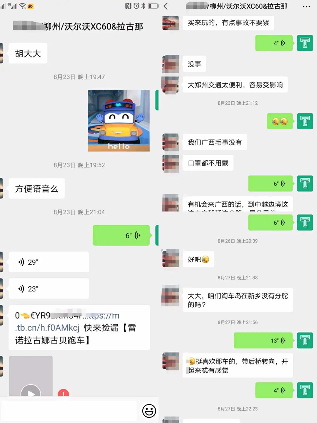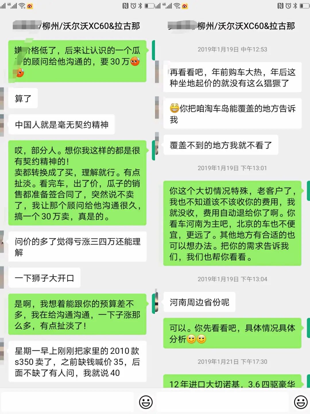 岛弹第一次淘车是2016年,当时胡大大从北京刚回到郑州,他就让胡大大帮他买了一台30多万的沃尔沃XC60发到了柳州。