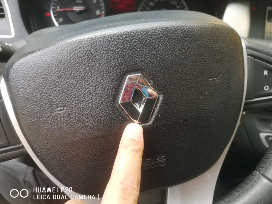 检测内饰:因为前面有过撞击,胡大大进入车内第一件事就是检查气囊。发现气囊修复过,方向盘上的雷诺车标都是重新粘上去的。