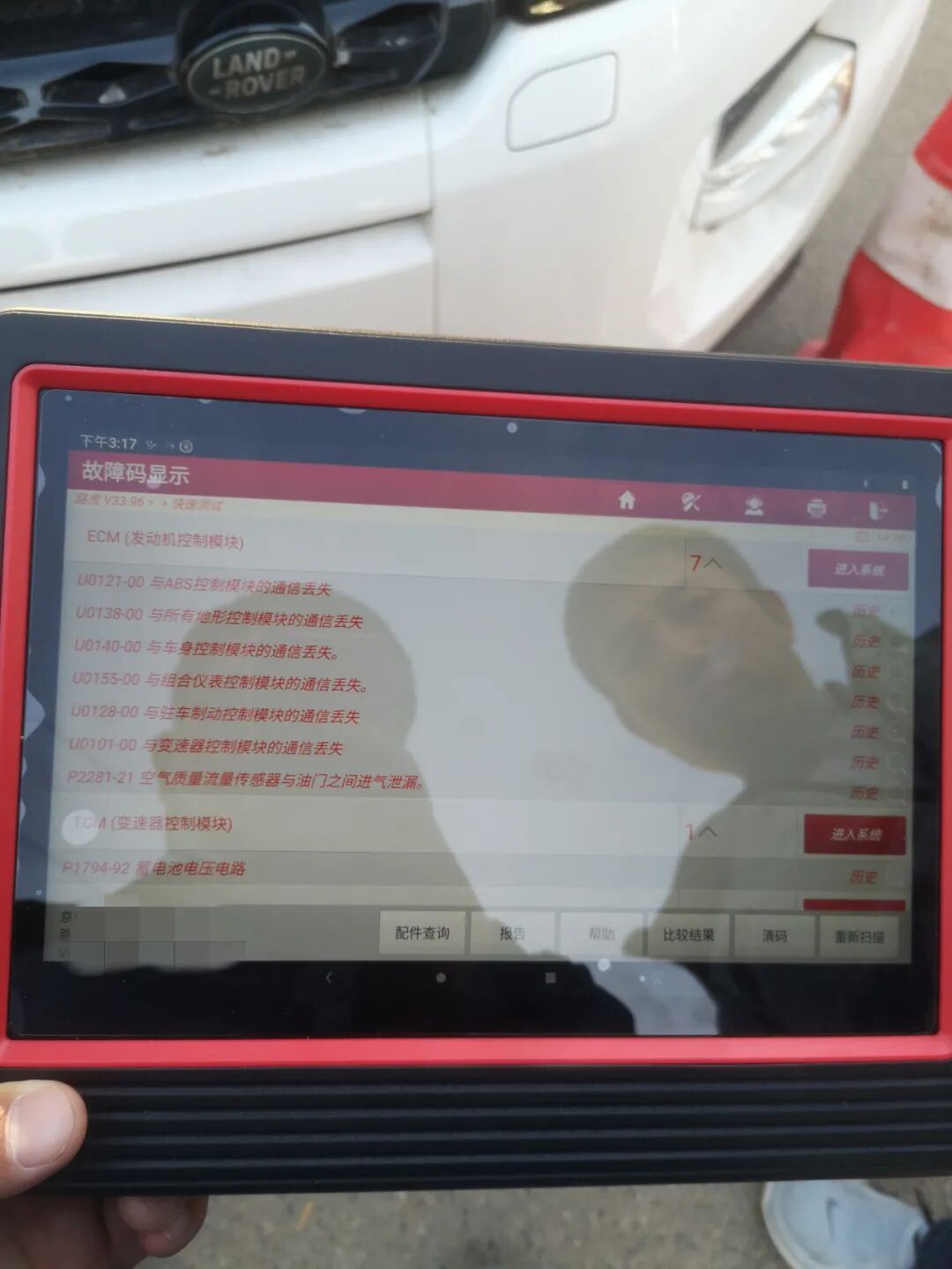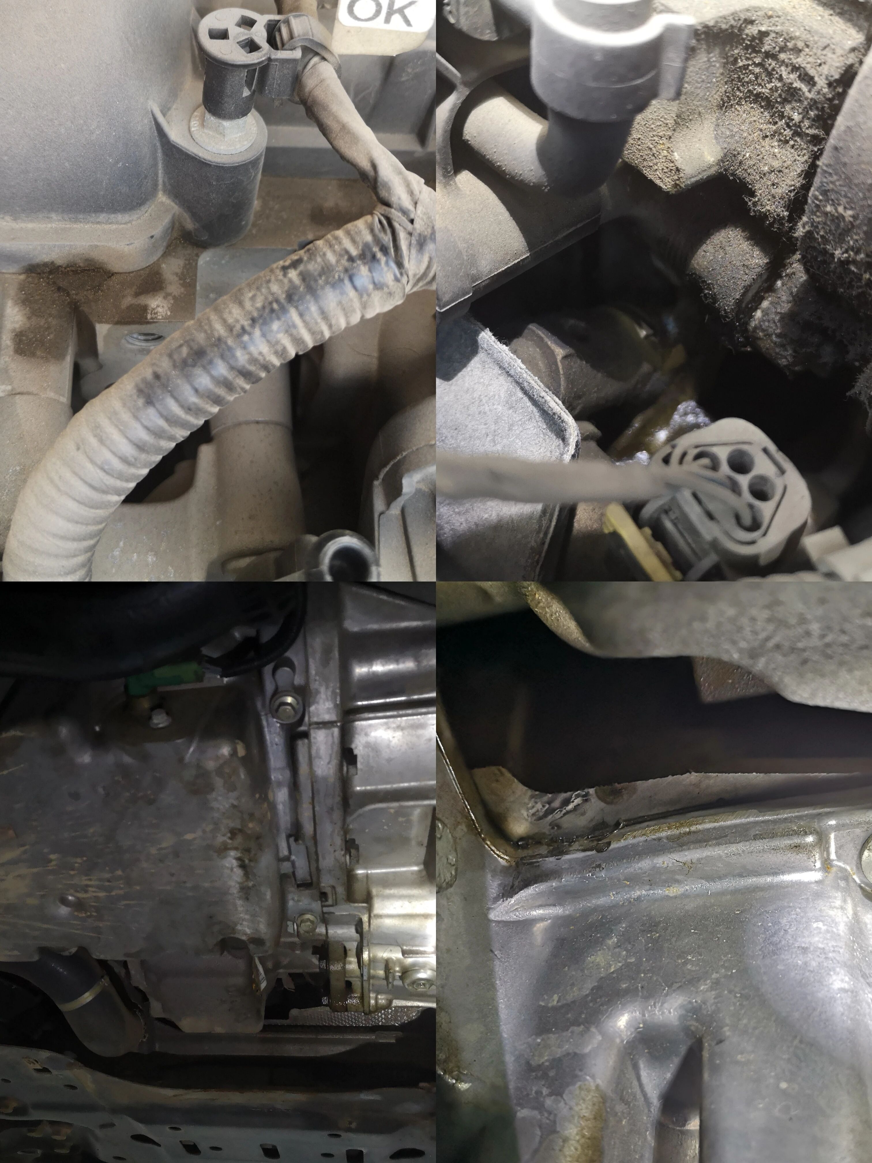 首先是检测发动机变速箱是否拆修过。检测一圈下来,发现水箱框架有拆装修复现象,前面的水箱,冷凝器都换了,左前纵梁头有修复现象(有锈蚀),左前大灯也换过,引擎盖螺丝全部拧动,连车牌都是变形后矫正的。