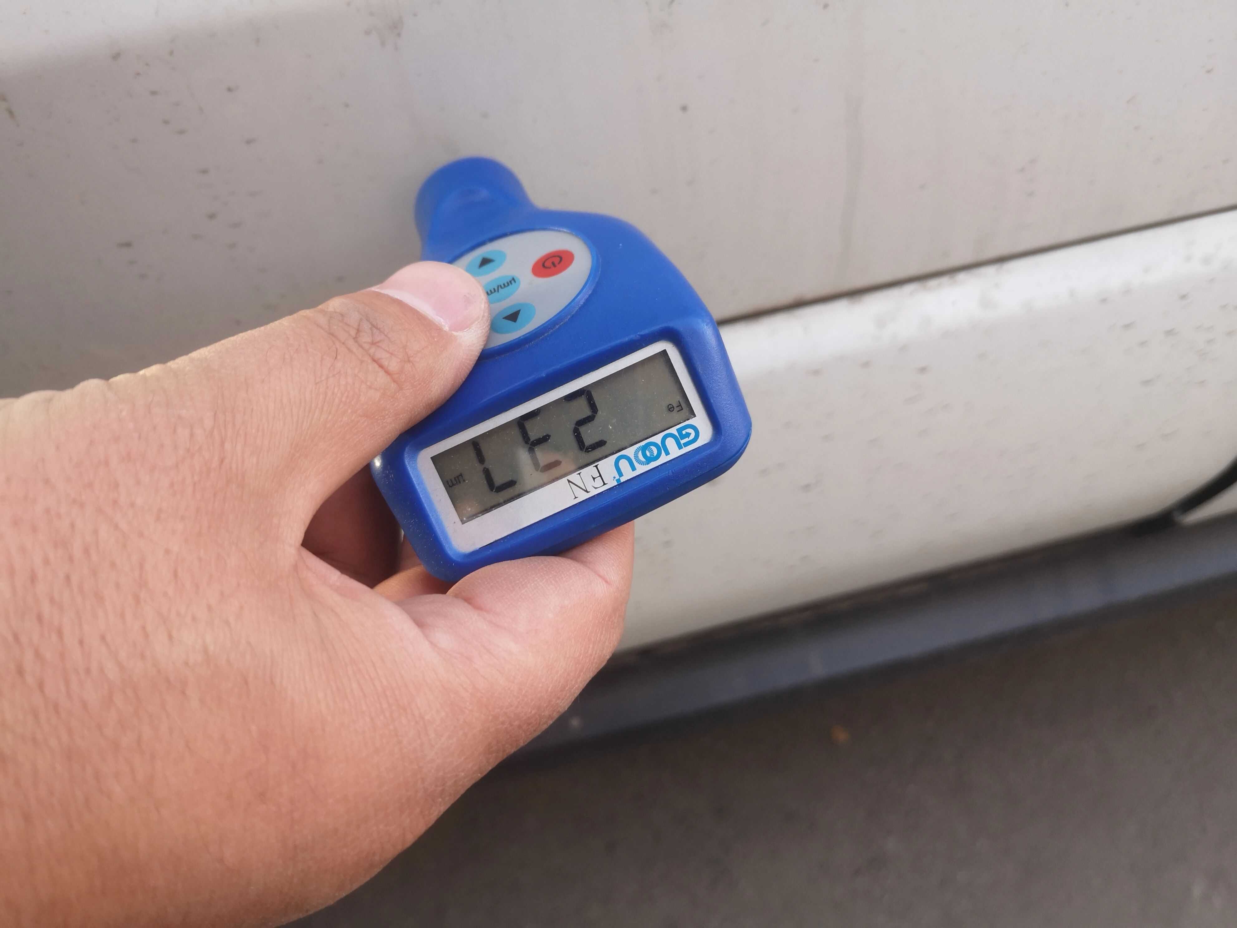 接着检测外观其他部位。发现车身右侧一侧钣金喷漆,引擎盖喷漆,保险杠喷漆。