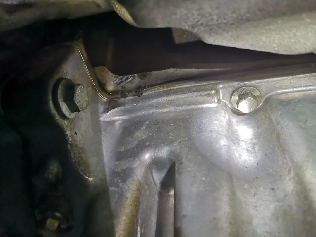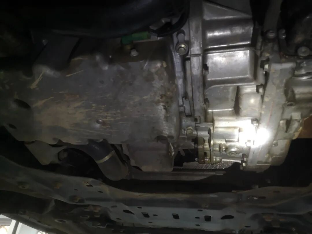 上架子看底盘。倒是没有发现特别严重的磕碰,但是发动机渗油比较明显,油底壳也更换过。