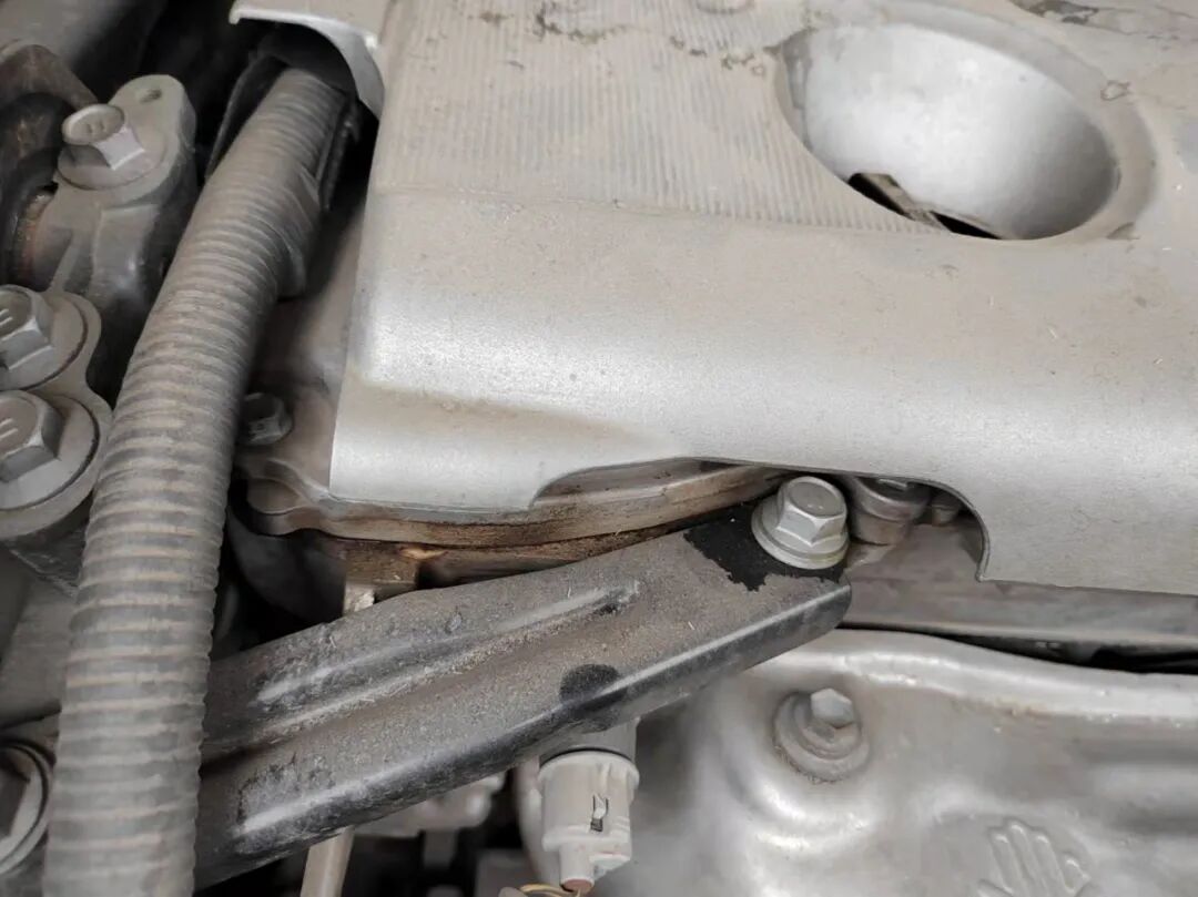 发动机舱看上去是自然状态,没有进行过清洗,也没有发现渗漏的情况,第一印象还是不错的。