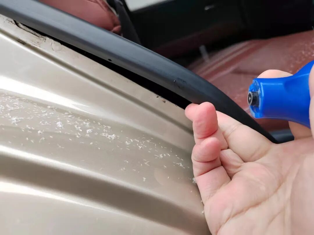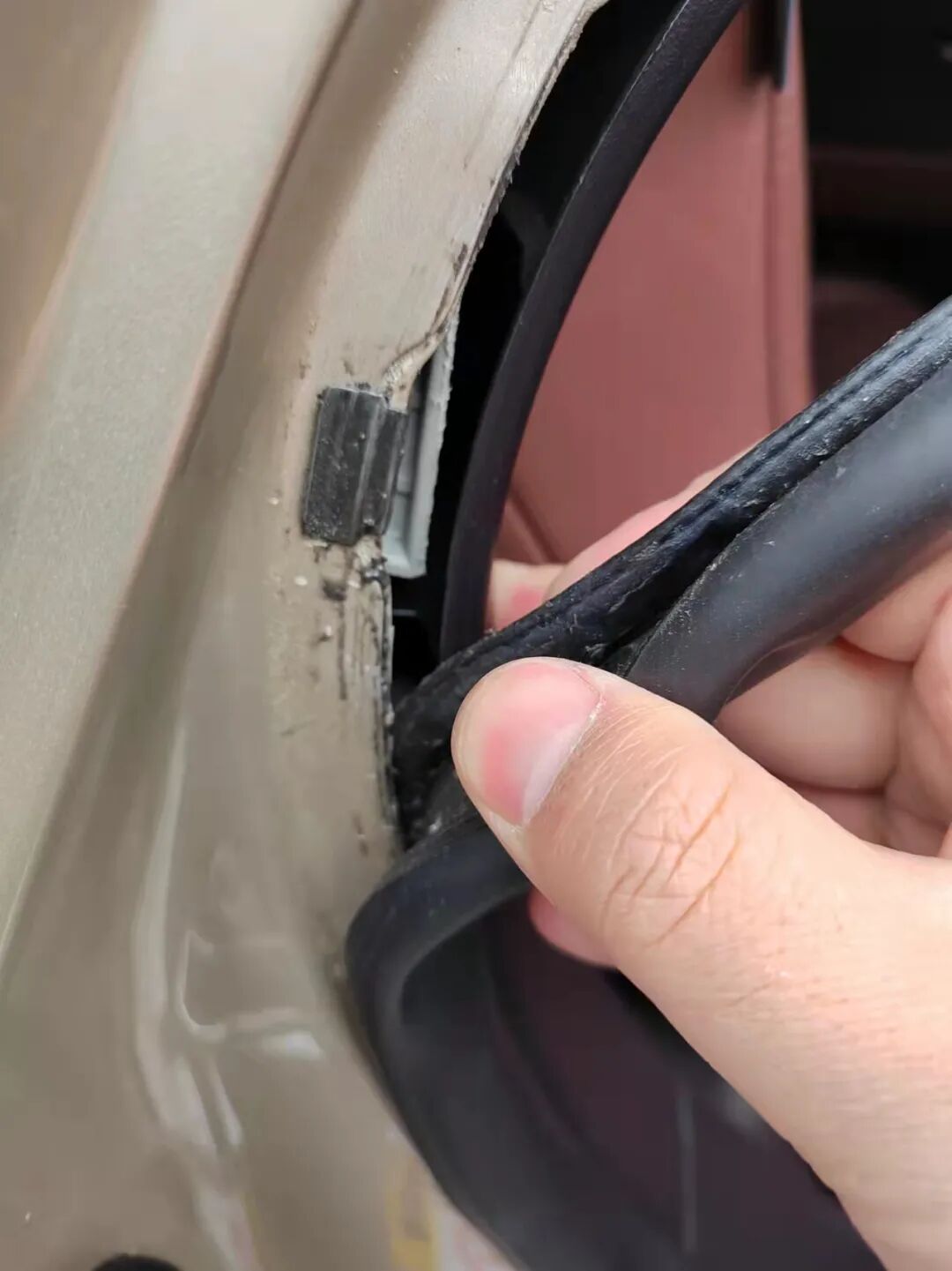 扒开A/B/C柱及车门的密封胶条,发现左侧都是原厂焊点,但是右侧后叶子板却没有焊点了。