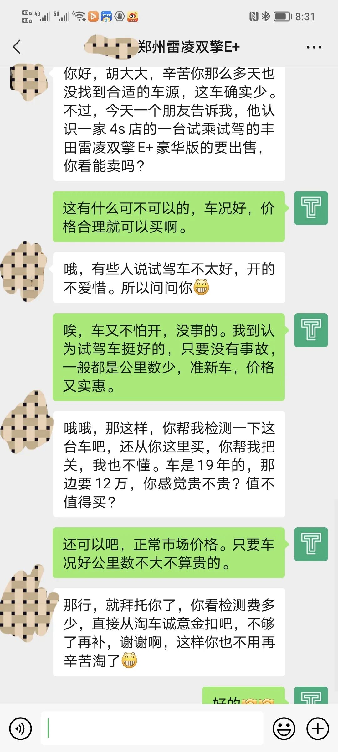 接下来他们对比了几台能上绿牌的插电混动汽车,无意间发现了卡罗拉和雷凌双擎E+这款车,他们原本就计划买台燃油版的雷凌或卡罗拉,一了解还有能上绿牌的雷凌。仔细一了解, 对这款车各方面都挺喜欢,但是一看价格,新车下来十大几万,将近二十万了,超预算太多。于是他们就想到了二手车。抱着试试看的心态让我们帮他淘一台雷凌双擎E+。