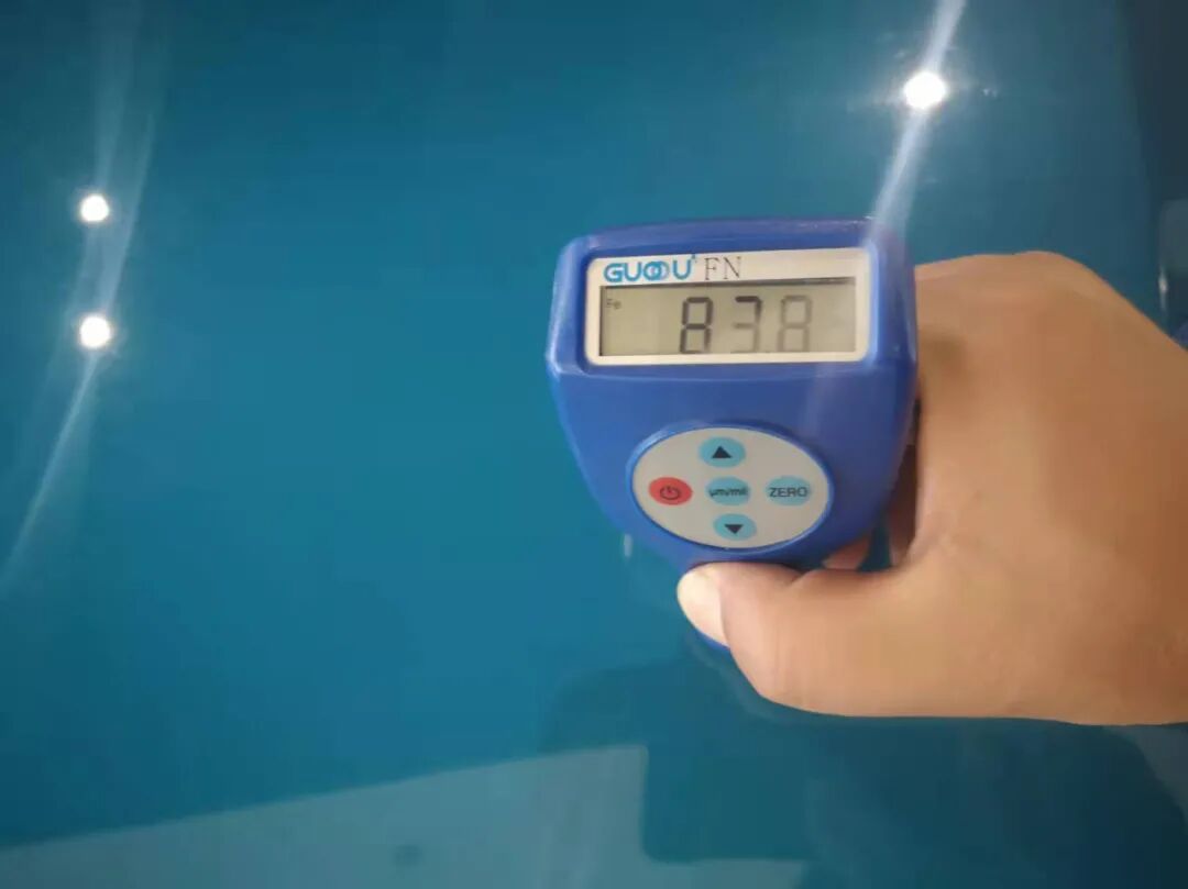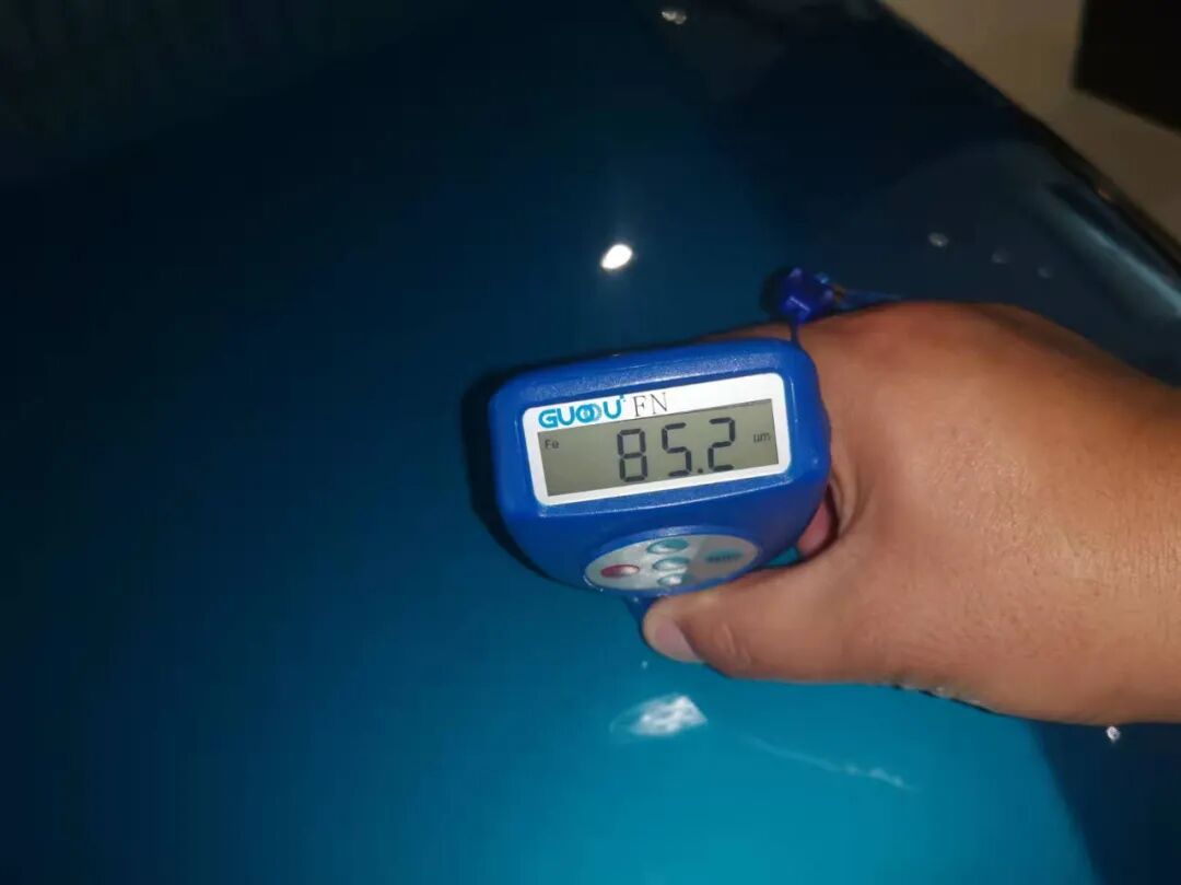 胡大大首先通过肉眼观看并辅助用漆面测厚仪检测一圈漆面情况,没有发现明显的瑕疵,果真连补漆都没有。