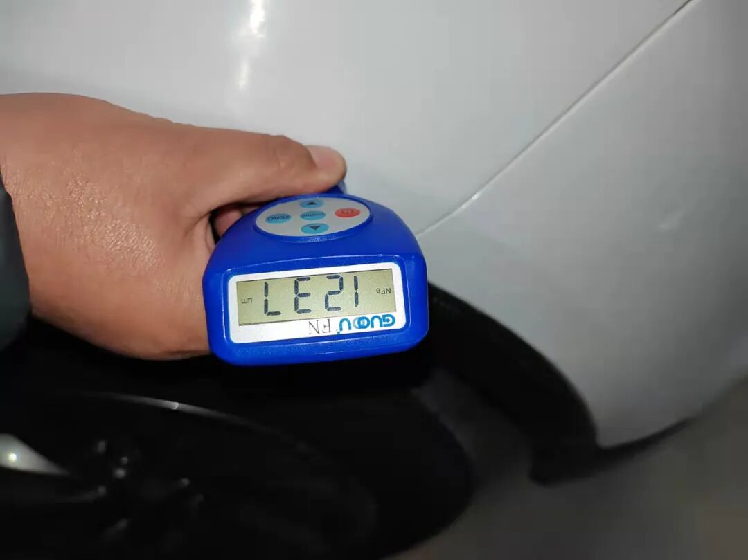 接下来我们检测车子的外观件,凭借多年的人工经验和漆面测厚仪综合检测,发现车身外观覆盖件保险杠有补漆修复现象,右前叶子板有钣金喷漆现象。好在不伤及内侧的车身骨架结构,不影响安全使用。外观覆盖件局部有划痕剐蹭。