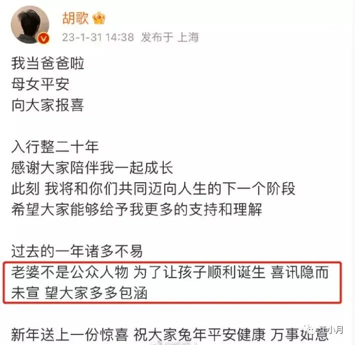 网友粉丝一头雾水,根本就没听说过胡歌的媳妇是谁,怎么就当了爸爸?