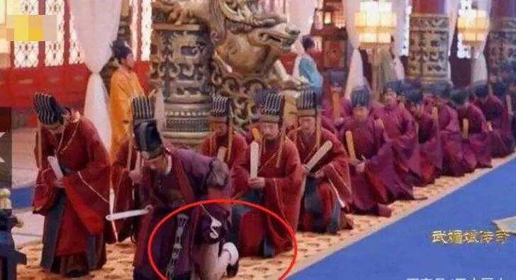 但就在大臣们上殿的镜头中,有一位大臣竟然大腿都露了出来,还排在队伍的第一位,你这是得有多热?