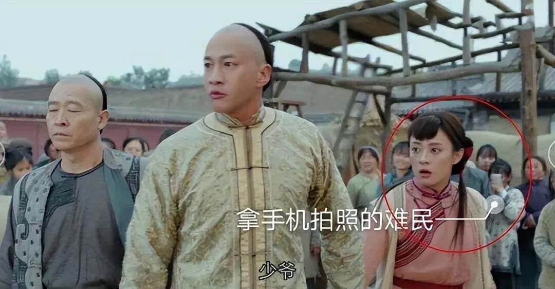 难怪这位大姐群演这么不走心,孙俪她们在前面辛辛苦苦拍戏,她却在后面拿个手机拍照,中午罚你不准吃盒饭。