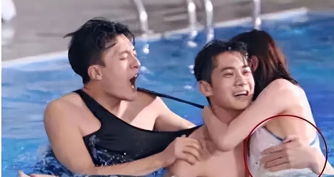 李菲儿这个镜头就是在综艺节目上发生的,当时是在泳池里面,和男演员合作,看看这都成啥了。