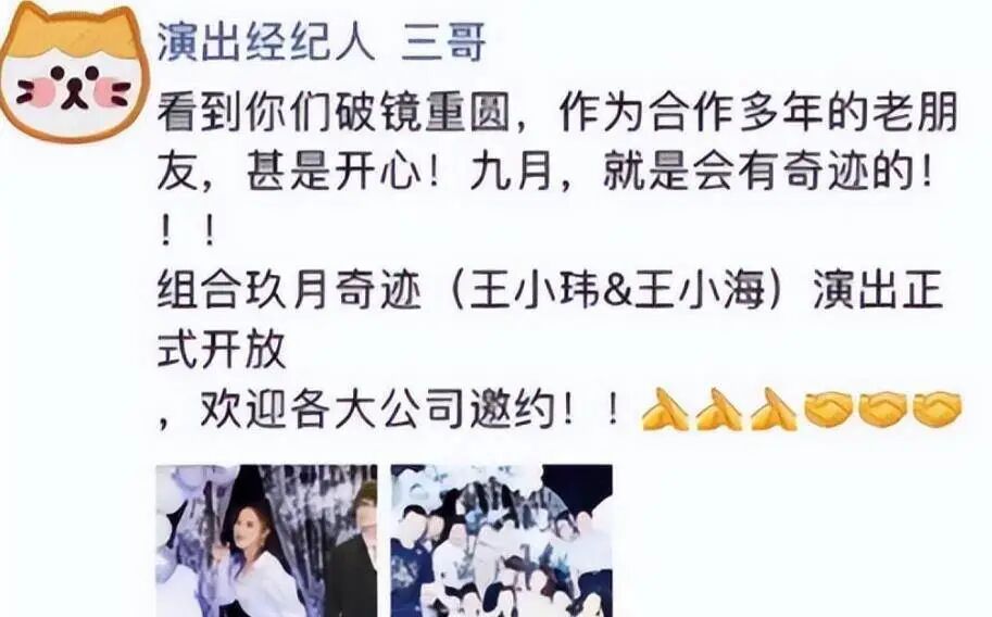 王小海和王小玮组建玖月奇迹的时候,两个人并不是恋人关系,倒有些像兄妹,称得上一对儿金童玉女。