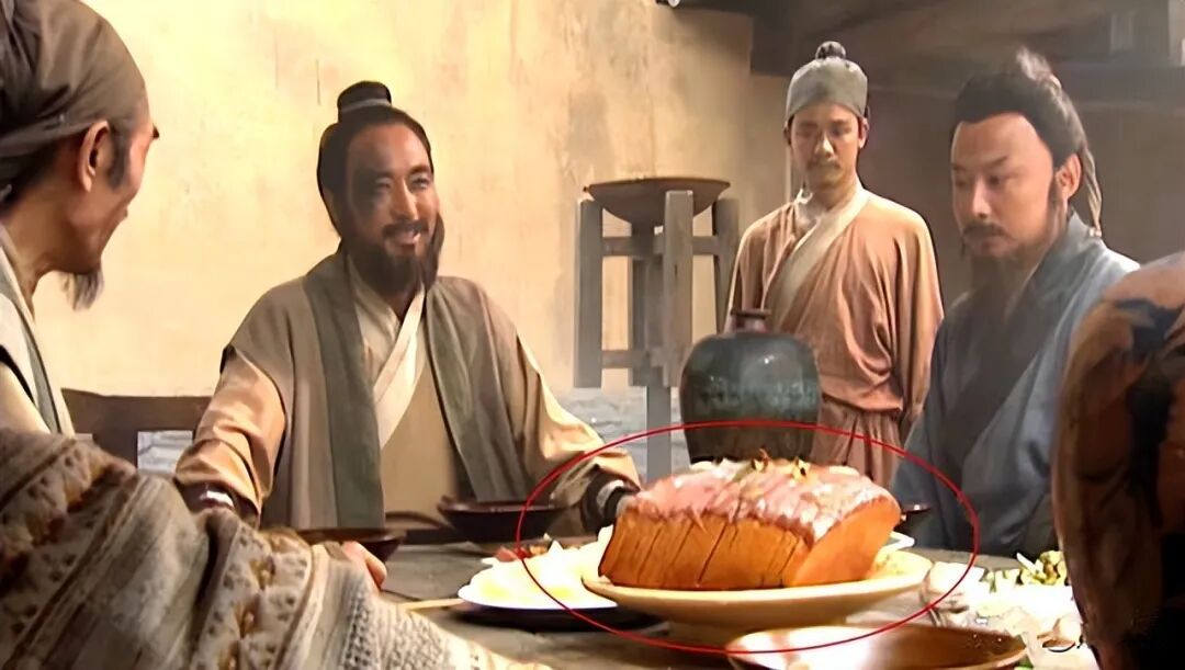 在拍林冲和杨志几个人吃酒席的时候,桌子上的红烧肉竟然是用的面包,码的整整齐齐的,也未免太明显了点儿。