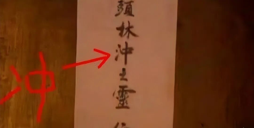 但最后这个穿帮镜头可该扣工资了,写林冲牌位的时候,冲字竟然被多写了一点儿,这不是浪费笔墨嘛!