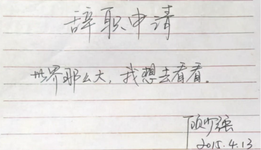 她的辞职信很短,只有十个字:“世界这么大,我想去看看。”