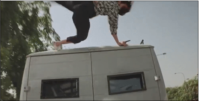 如果成龙反应稍微慢那么一些,杨紫琼很有可能会掉到车前方,后果可想而知。