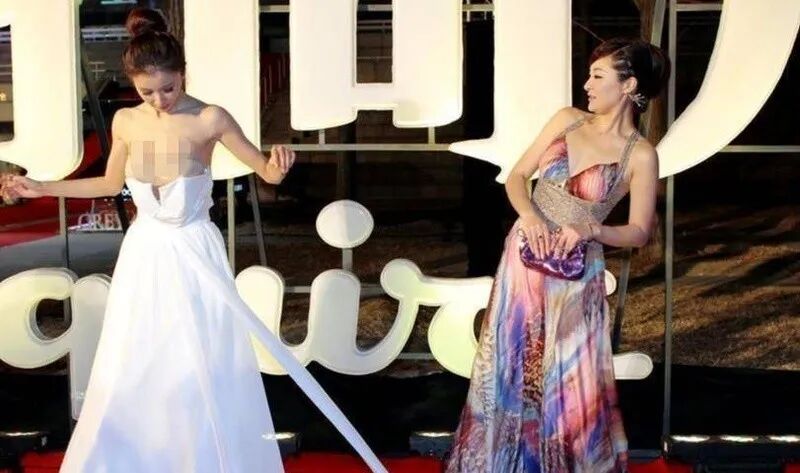在一次影帝颁奖典礼上,刘嘉玲在台上讲话,右边的肩带却慢慢滑落下来,刘嘉玲却没有感觉到,继续讲着话。
