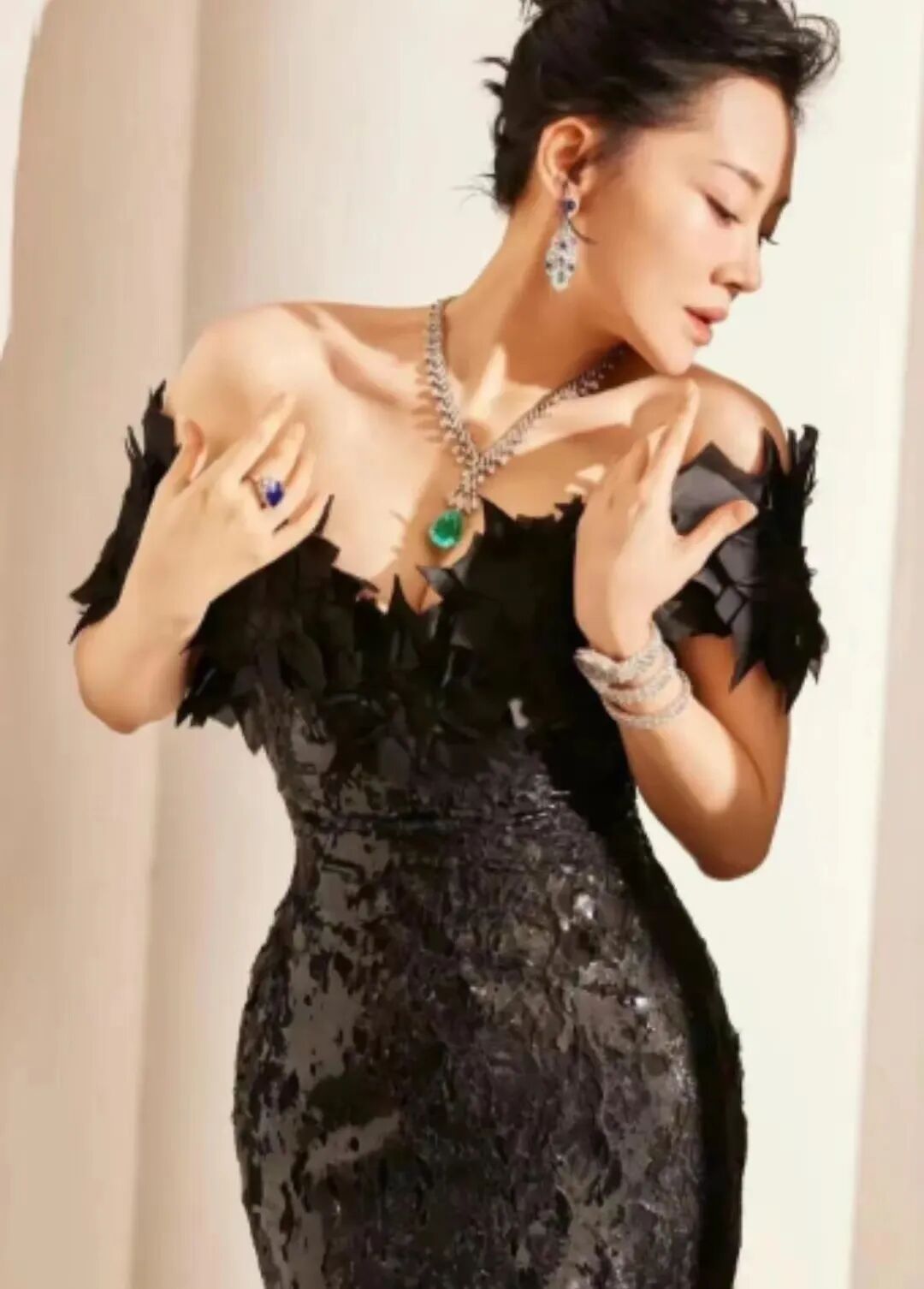 好身材就要大胆的秀出来。这件包臀裙从远处看就像一只高傲的黑天鹅,特别高贵和优雅。衣领处的拼接模仿了黑色的羽毛,羽毛在风中微微摇曳,韵味十足。