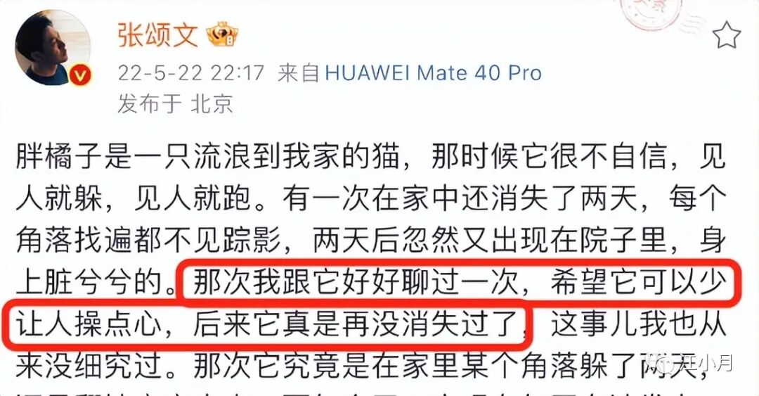 张颂文和猫咪交流,告诉它,以后这里就是它的家,熟悉了就好,当初自己和它一样,在这个陌生的地方感到孤独。