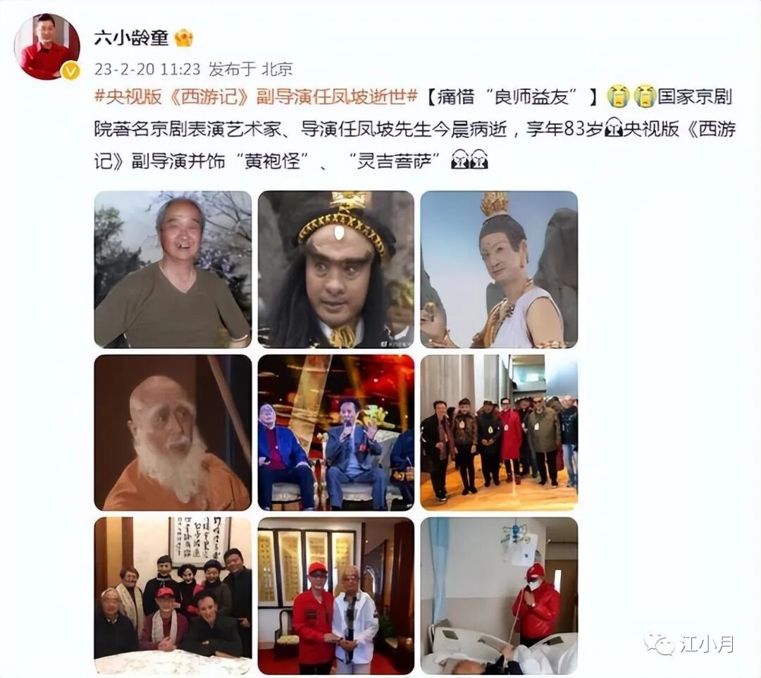 前几天,六小龄童老师发圈,《西游记》副导演,表演艺术家,在这部剧中还担任过好几个角色的任凤坡,走了,享年83岁。