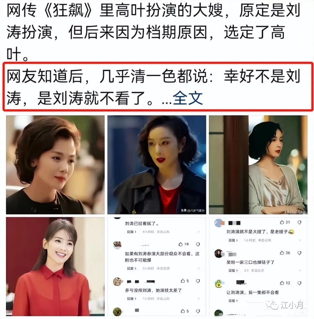 但有网友说,原本陈书婷这个角色定的是刘涛,但她因为档期错不开推了,兜兜转转,成就了高叶。